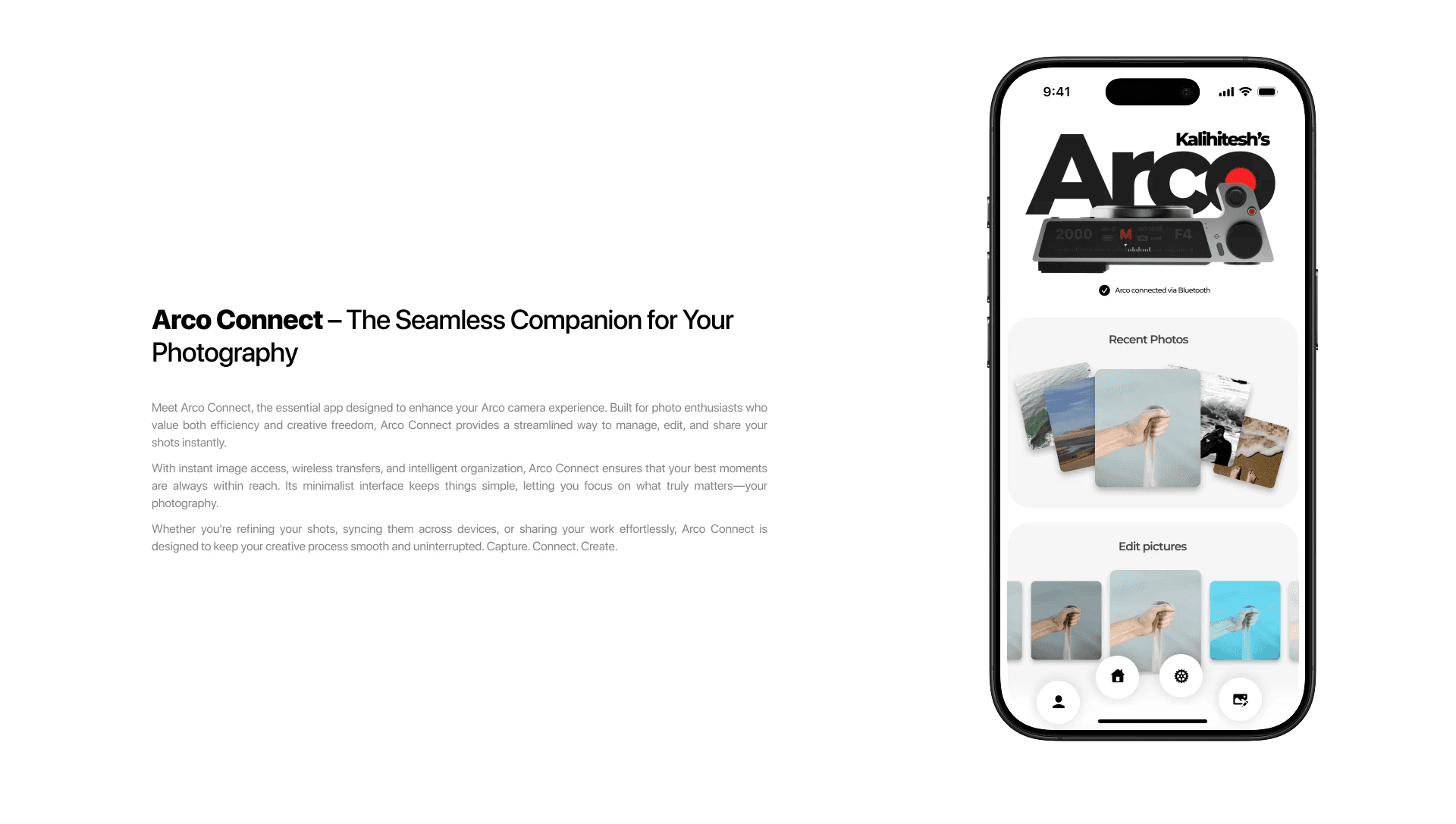 ARCO is a minimalist camera designed around touch, balance, and focus.