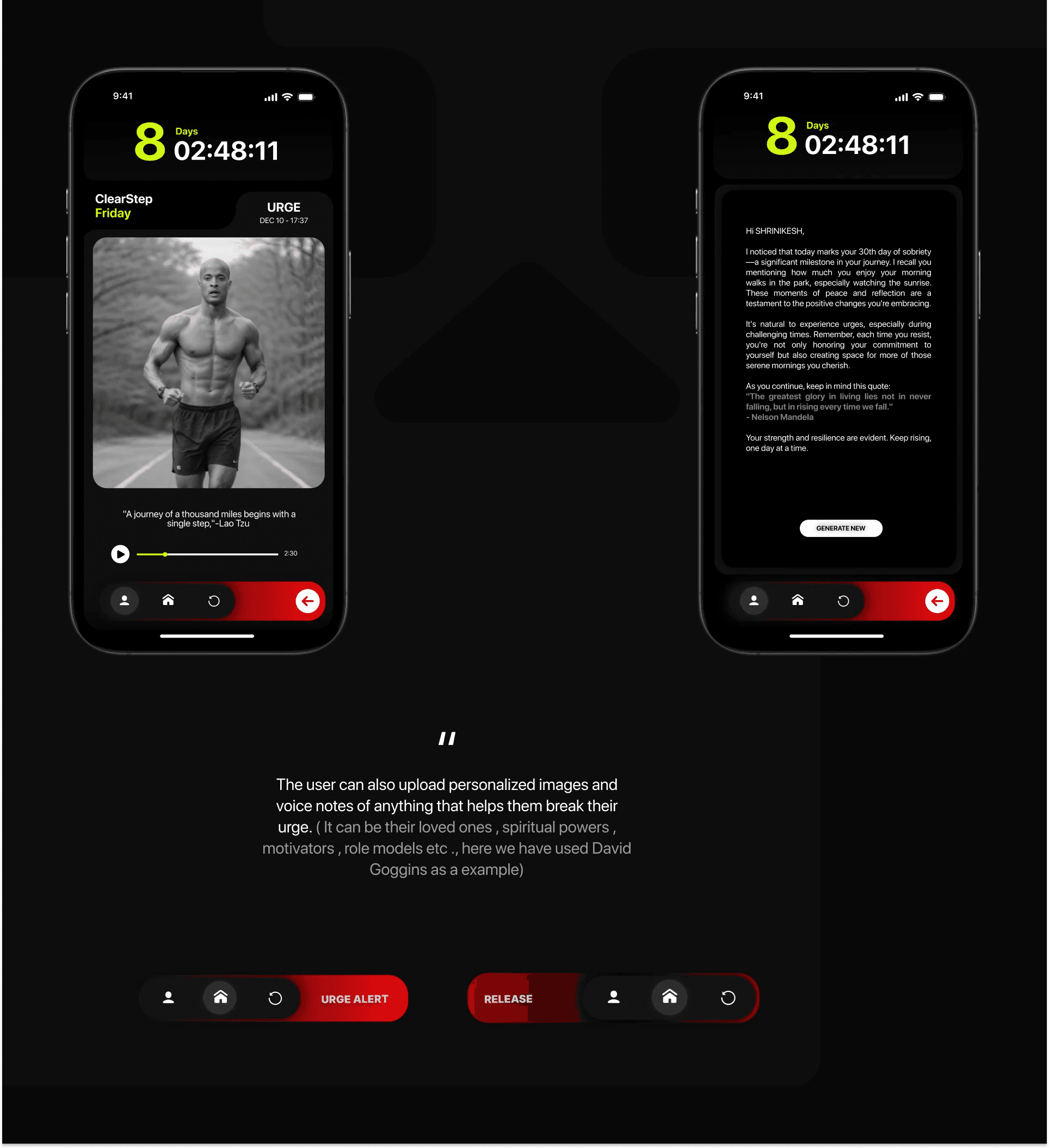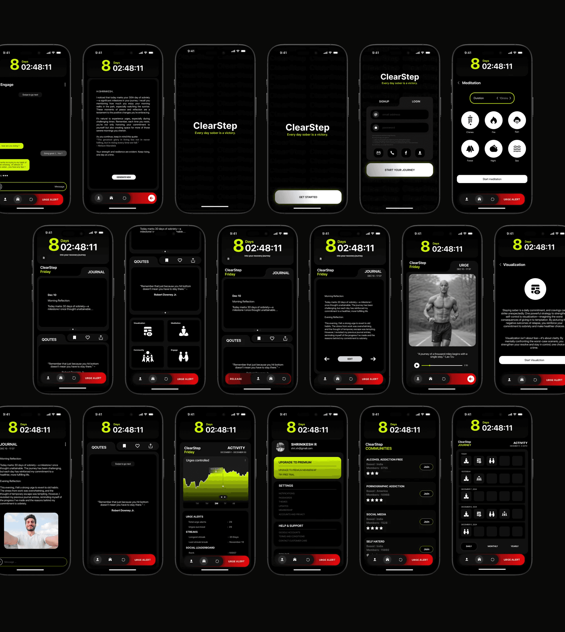 ClearStep is an addiction recovery app designed to support people during the hardest moments of their journey, the urges, the relapses, and the quiet days where motivation fades.
