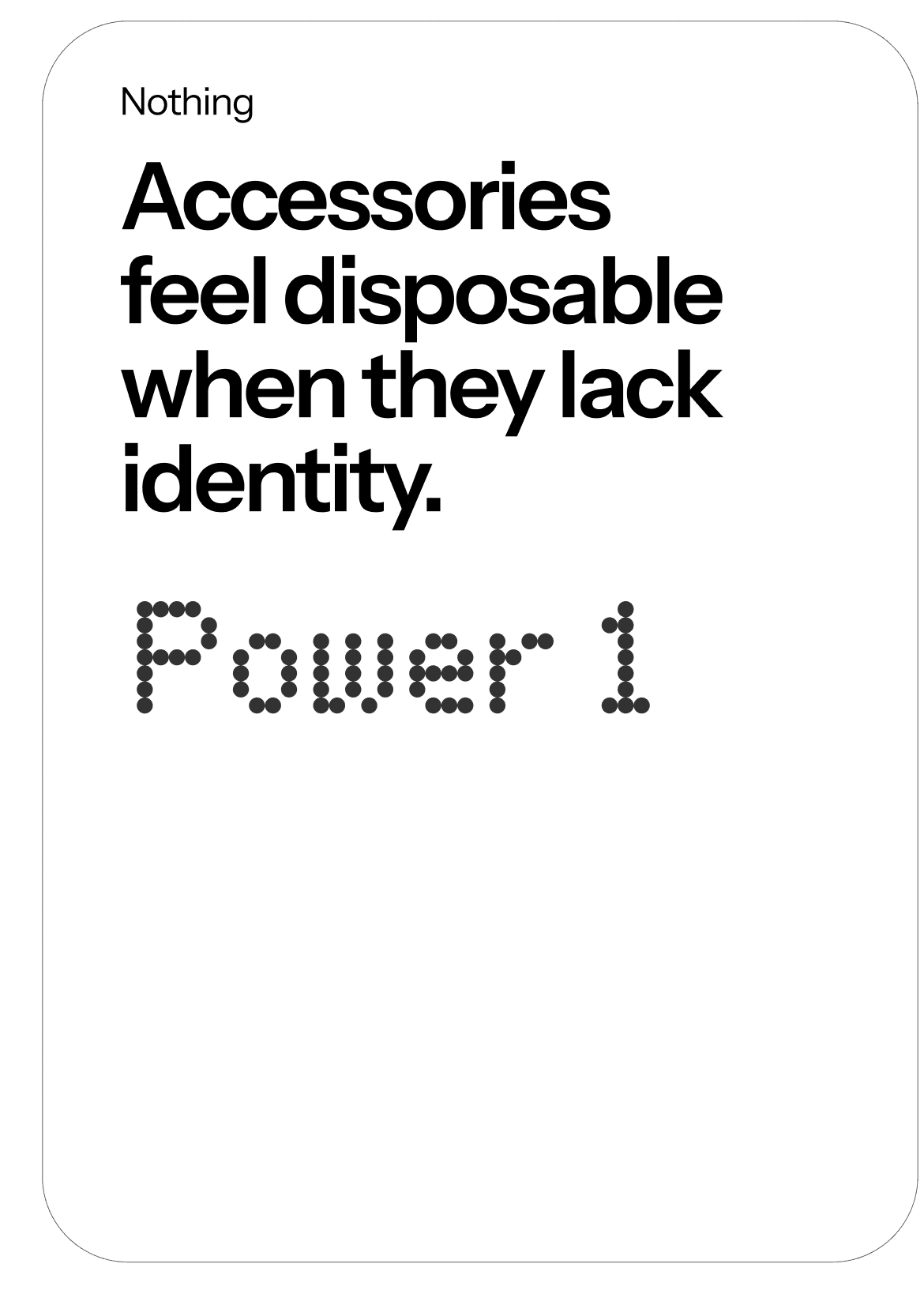 NOTHING Power (1) is a conceptual power bank designed as an extension of the Nothing ecosystem rather than a standalone accessory.